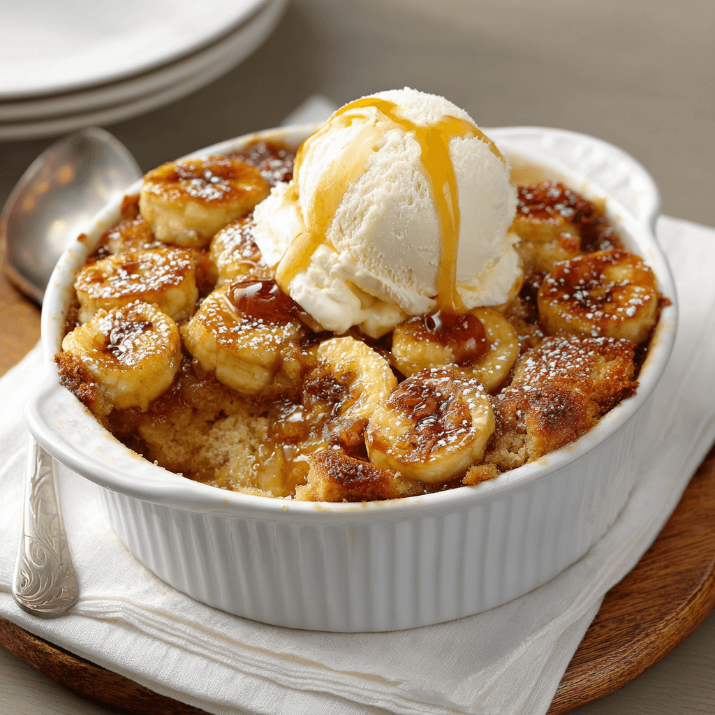 Bananas Foster Cobbler Bake – Sticky, Buttery & Comfort-Heavy.