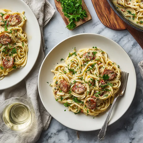 • Calories: Approximately 650–750 per serving (varies by sausage and cream used)