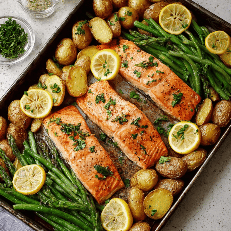 The Roasted Salmon & Potatoes Tray Bake is a quintessential weeknight dinner that balances elegance with ease. This recipe relies on staggered roasting: the potatoes are given a head start to achieve a crispy, golden exterior, while the salmon is added later…