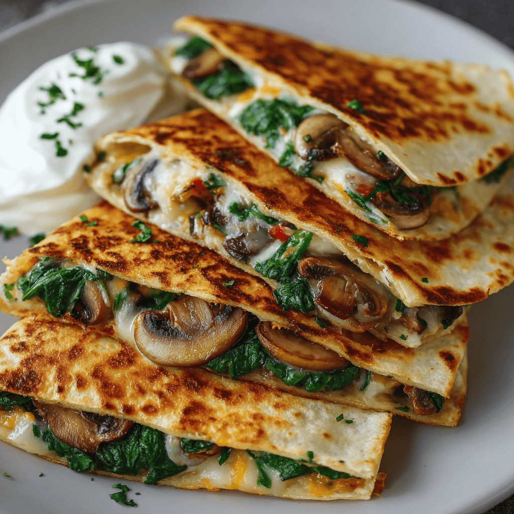 Cheesy Spinach and Mushroom Quesadillas: A Savory Vegetarian Delight.
