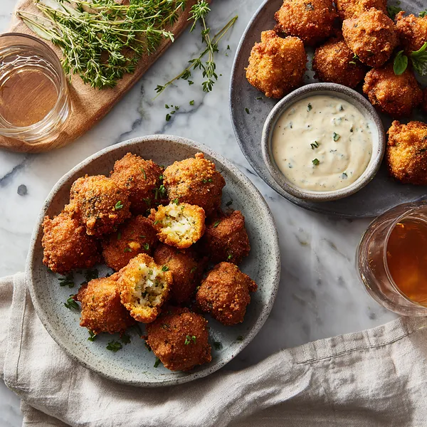 This recipe balances cornmeal and flour to achieve structure without heaviness, while buttermilk and dual leavening agents create a tender, aerated interior. Controlled frying temperature allows the exterior to crisp evenly as steam expands inside, producing light, puffed hush puppies rather than dense fritters. Calorie content remains moderate for a fried appetizer when portioned appropriately and served as part of a balanced meal.