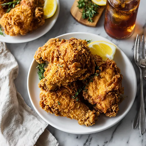 Perfectly seasoned fried chicken features a deeply golden, crunchy crust that gives way to juicy, tender meat inside. This classic Southern technique uses a buttermilk marinade and double coating to achieve restaurant-quality flavor and texture at home.
