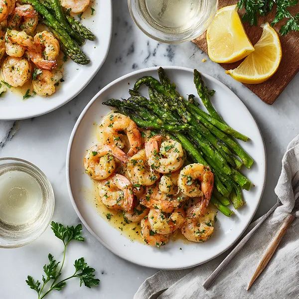 Succulent shrimp and tender-crisp asparagus come together in a fragrant garlic butter sauce brightened with lemon, herbs, and creamy feta. This quick skillet dish delivers bold Mediterranean-inspired flavor with minimal preparation and elegant presentation.