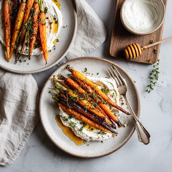 Honey Roasted Carrots are a refined yet approachable side dish that highlights natural sweetness through high-heat roasting. Caramelized rainbow carrots are finished with warm honey and paired with airy whipped ricotta for contrast in both flavor and texture. The final dish is elegant, balanced, and versatile enough for everyday dinners or special occasions.