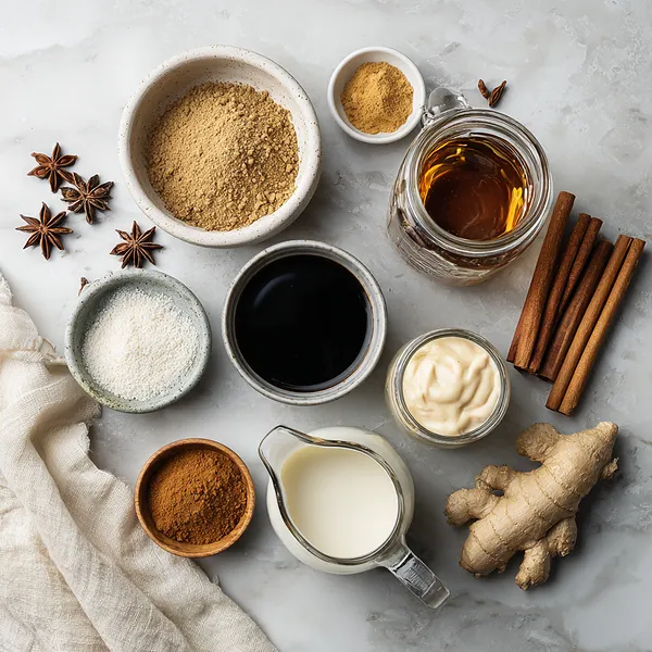 Prepare the gingerbread syrup – Heat molasses, brown sugar, and spices in a small saucepan over medium heat, stirring for 3–4 minutes until smooth and slightly thickened. Let cool briefly.