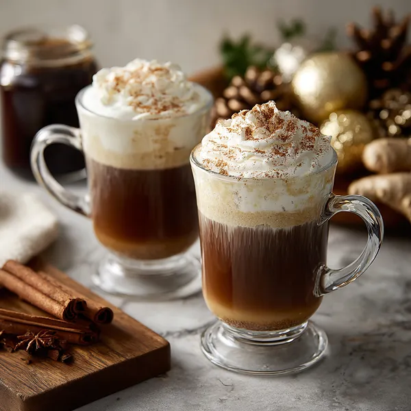 This layered gingerbread coffee blends bold espresso with warm molasses spices, velvety milk, and softly whipped cream for a visually striking holiday beverage. Each sip delivers comforting seasonal flavor balanced by creamy richness and aromatic spice.