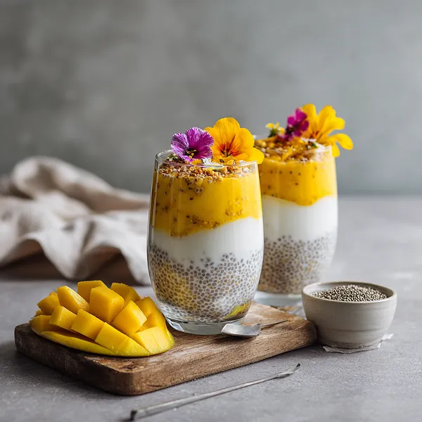 This mango chia parfait is a vibrant, nutrient-rich layered breakfast that pairs creamy coconut chia pudding with juicy tropical fruits and delicate edible flowers. The result is a refreshing, naturally sweet treat that feels indulgent while remaining wholesome and plant-based.