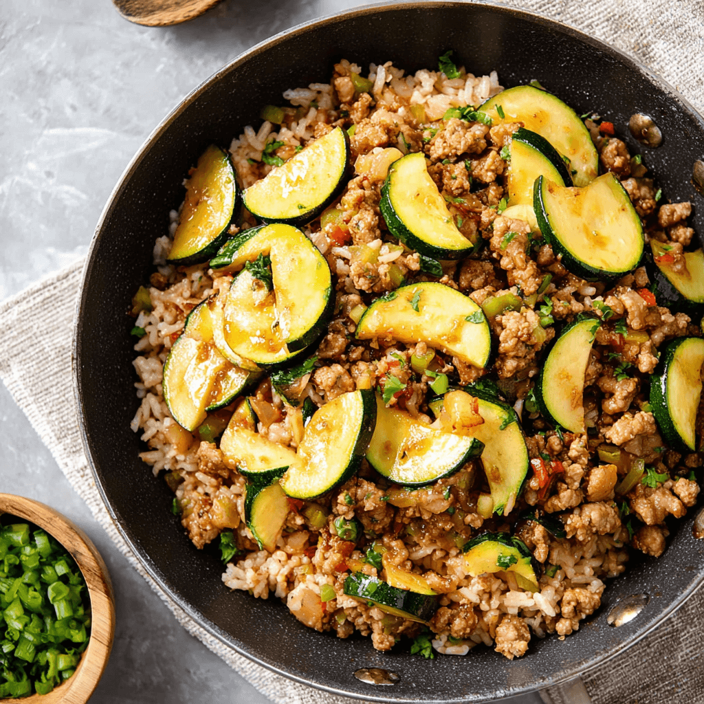 This skillet meal is a study in texture. The ground turkey provides a savory, slightly chewy protein base that contrasts with the soft, pillowy rice. The zucchini is the secret star—because we steam it at the very end, it retains a succulent snap that keeps the dish feeling fresh rather than heavy.
