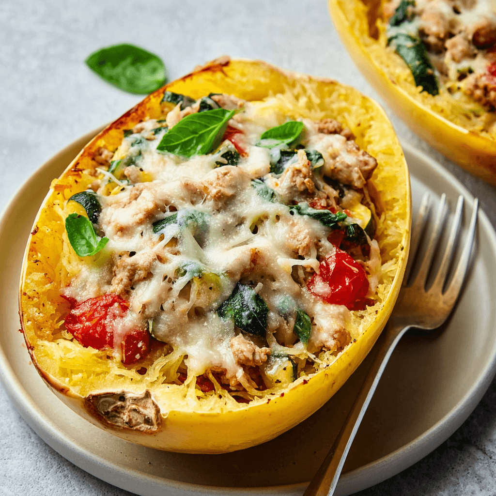 The Stuffed Spaghetti Squash is a culinary magic trick. When roasted, the flesh of the squash transforms into tender, noodle-like strands that act as a low-carb canvas for whatever flavors you crave.1 This “Lasagna” style version is the ultimate comfort food—rich with ricotta, brightened with spinach, and topped with a bubbling golden layer of mozzarella. It’s a warm hug of a meal that won’t leave you in a “pasta coma” before the holiday festivities are over.