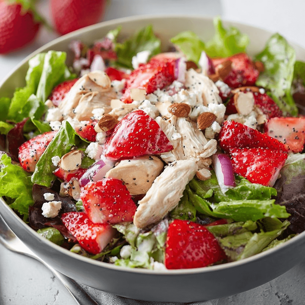 Strawberry Poppy Seed Rotisserie Chicken Salad proves that you can eat healthily and elegantly without spending hours in the kitchen. It is a dish that celebrates fresh produce and the simplicity of a successful assembly. Whether for a quick lunch or stress-free entertaining, this recipe stands out for its natural indulgence and vibrant flavors.