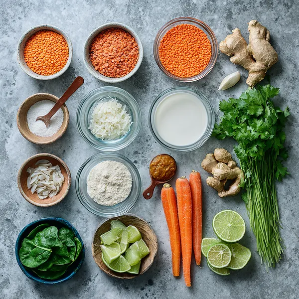 Red lentils cook quickly and naturally disintegrate, creating a creamy texture without blending or dairy. Coconut milk adds fat that carries spice and rounds out heat, while lime juice provides acidity to balance richness. Blooming curry paste in oil enhances aroma and depth. At roughly 320 calories per serving, this soup delivers plant-based protein, fiber, and healthy fats in a satisfying yet balanced meal.